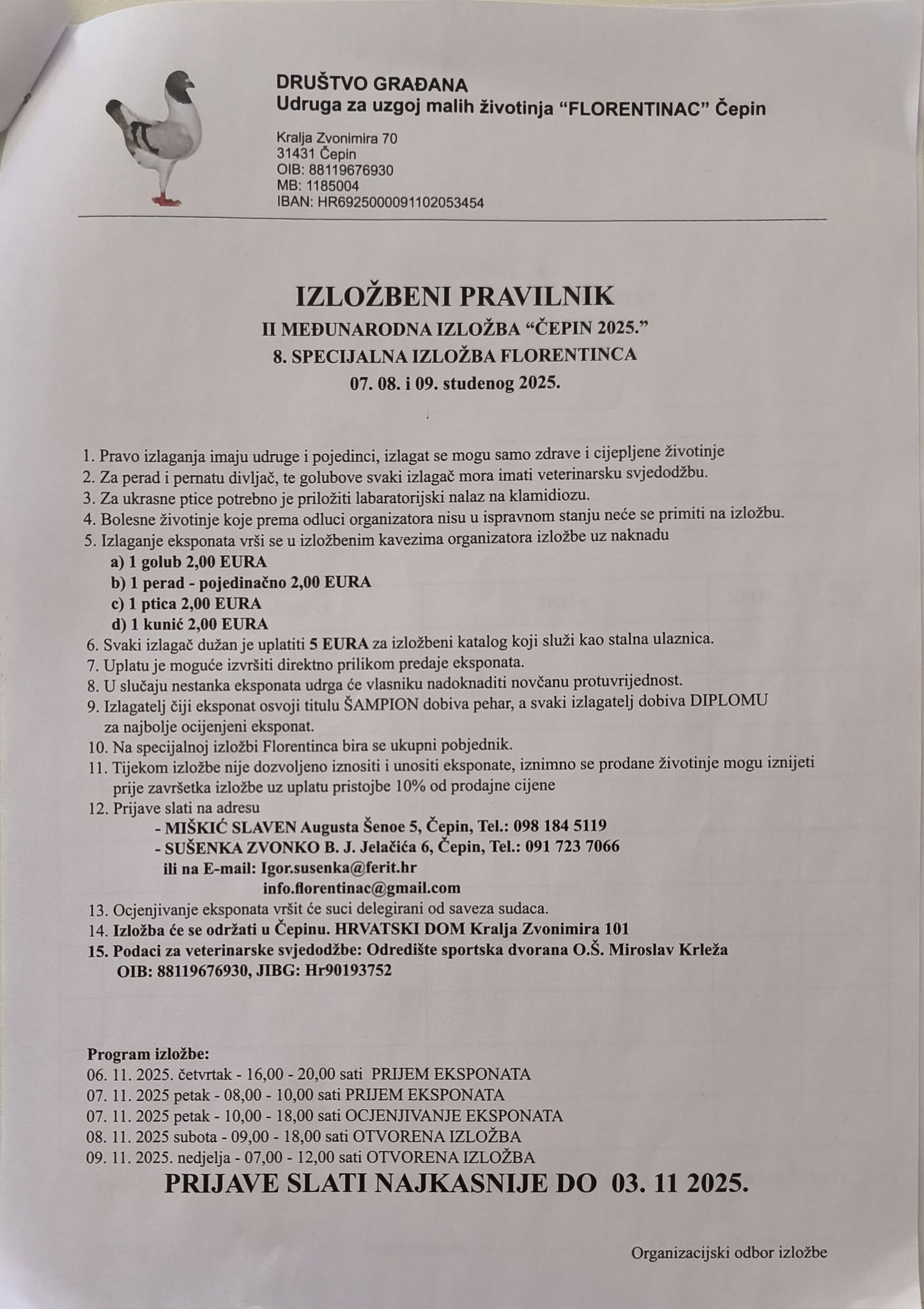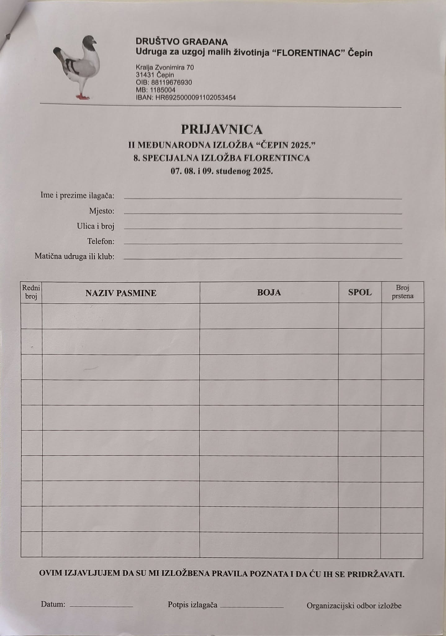 Izložba će se održati 08. i 09. studenog 2025-te godine u dvorani O.Š. Miroslava Krleže u Čepinu